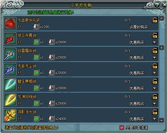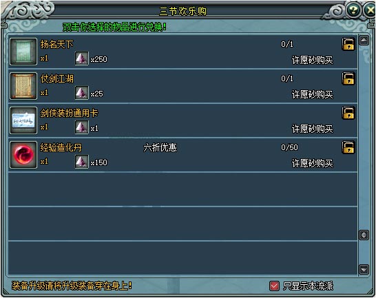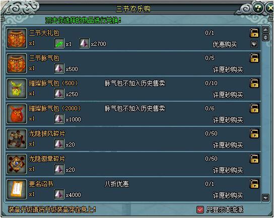 活动期间,大侠可以在“游戏活动大使”处购买各种超值好礼。