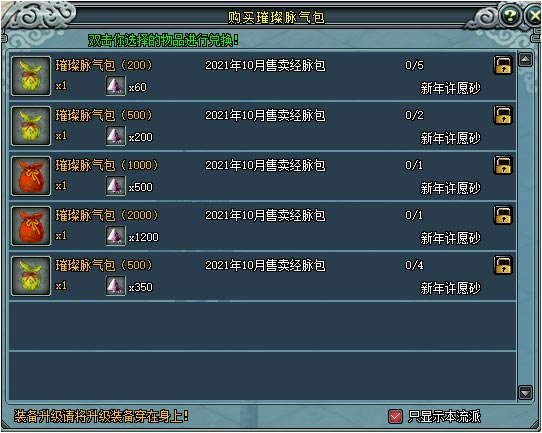 | 重归江湖脉气包 | 10 | 108混沌脉气/次 | 118混沌脉气/次 | 158混沌脉气/次 | 168混沌脉气/次 |