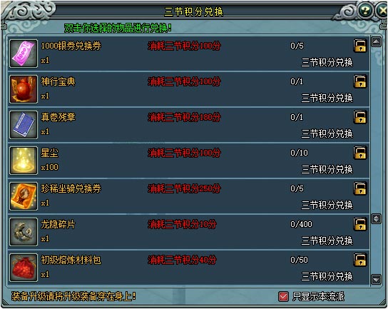 | 传说坐骑装备兑换券 | 1 | 1 | 1 | 1 | 1 |